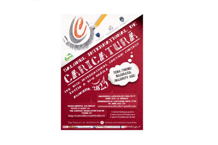Astfel, potrivit organizatorilor – Centrul Județean pentru Conservarea și Promovarea Culturii Tradiționale (Centrul de Creație) Brăila, Consiliul Județean și Primăria Municipiului Brăila – lucrările pentru cea de-a XVIII-a ediție a Salonului Internațional de Caricatură (maxim trei pentru fiecare participant) pot fi depuse prin e-mail până pe data de 11 iunie a.c., iar jurizarea lor se va face începând cu data de 26 iunie. Tema ediției 2023 a Salonului Internațional de Caricatură de la Brăila este „Majoratul”, iar Marele Premiu este însoțit de un cec de 1.000 de euro. Vor mai fi acordate, de asemenea, premii totalizând 2.200 de euro (Premiul I – 700 euro, Premiul II – 500 euro, Premiul III – 400 euro, la care se adaugă trei Premii Speciale a câte 200 de euro fiecare).