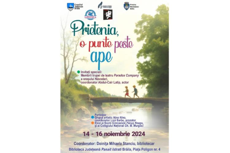Biblioteca Județeană „Panait Istrati” Brăila și Trupa de teatru „Paradox Company”, din Năvodari, anunță cu entuziasm lansarea evenimentului „Prietenia, o punte peste ape”, dedicat pasionaților de teatru din Brăila.