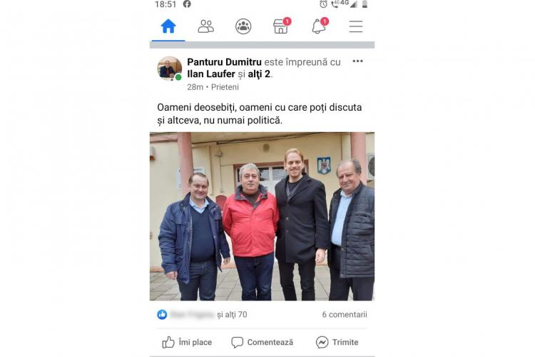 Primarul comunei Movila Miresii, PSD-istul Dumitru Panţuru, s-a afişat recent într-o ipostază cel puţin dubioasă, având în vedere că ne aflăm în plină campanie electorală. Acesta s-a fotografiat, zilele trecute, cu candidaţii Pro România la Alegerile Parlamentare şi chiar a postat ulterior poza pe reţele de socializare. Panţuru apare în fotografie alături de Silviu Dorin Petrea (candidatul Pro România pentru Senat), de Ilan Laufer, (candidatul Pro România pentru Camera Deputaţilor) şi de senatorul ALDE, Mihai Ruse. Acesta chiar a adăugat şi un mesaj: ”Oameni deosebiţi, oameni cu care poţi discuta şi altceva, nu numai politică”.