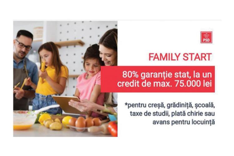 ”Este pentru prima dată când Guvernul intervine pentru a garanta împrumuturile tinerilor. Până acum mulți tineri nu puteau accesa credite din cauza salariilor mici sau a faptului că nu aveau bunuri care să constituie o garanție pentru bancă. Astfel prin programul Family Start tinerii pot obține un credit în valoare de maxim 75.000 de lei, garantat de către stat în proporție de 80% și cu dobândă subvenționată. Suma poate fi rambursată în cel mult 10 ani, cu o perioadă de grație de maxim 5 ani. Banii pot fi folosiți pentru plata cheltuielilor cu creșa, grădinița, școala, after-school, achiziția de autoturisme noi pentru familie, cu 7 locuri, taxe de studii sau activități extrașcolare pentru copii, plata chiriei la locuință, avansul pentru achiziția unei locuințe, cheltuieli legate de cununia religioasă sau civilă etc.”, a explicat Rotaru.