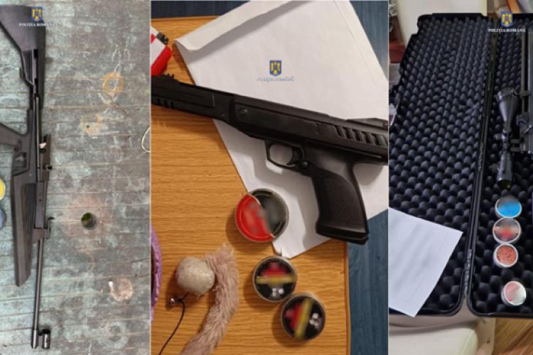 Puști și pistoale deținute ilegal, găsite la domiciliile a trei bărbați din Brăila