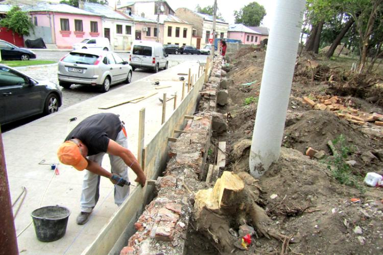 Reabilitarea gardului de la Grădina Mare are un ritm bun de lucru, iar partea dinspre strada Grădina Publică are un grad de execuție destul de avansat, asta deși nu au lipsit problemele cauzate de copacii care le îngrădeau muncitorilor spațiul de manevră, precum și de un transformator electric amplasat și el la limită.