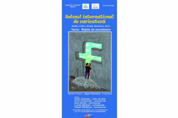 Joi, 27 septembrie 2018, ora 17.13, la Galeria de Artă Brăila din Piaţa Traian nr. 2 are loc vernisajul expoziţiei celei de a XIII-a ediţii a Salonului Internaţional de Caricatură. Manifestarea este organizată de Consiliul Judeţean Brăila, Centrul Judeţean pentru Conservarea şi Promovarea Culturii Tradiţionale Brăila şi are ca temă “Reţele de socializare”. La ediţia din acest an au participat 319 caricaturişti din 50 de ţări, cu un număr de 768 de lucrări.