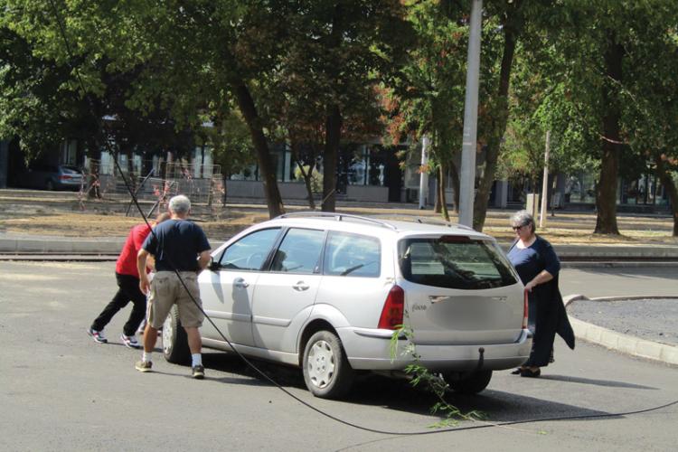 * zilele trecute, un conducător auto neatent a rămas suspendat cu autoturismul pe placa de beton a unei guri de canalizare, în zona Independenței/Școlilor, înainte ca traficul auto în respectiva intersecție să fie redeschis