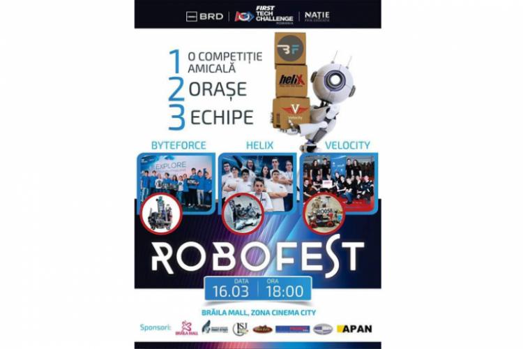 Roboţii iau cu asalt Brăila Mall! Sâmbătă, 16 martie, începând cu ora 18.00, în zona Cinema City, brăilenii mici şi mari, pasionaţi de robotică sau simpli curioşi, sunt invitaţi la “RoboFest”, o competiţie amicală la care vor participa trei echipe din Brăila şi Galaţi. Evenimentul reprezintă o avanpremieră a competiţiei BRD First Tech Challenge, implementată în România de Asociaţia „Naţie Prin Educaţie”, care va avea loc la Bucureşti în perioada 24-26 martie.