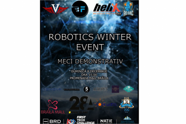 Weekendul acesta, roboţii “iau cu asalt” Brăila Mall. Duminică, 8 decembrie, începând cu ora 17:00, va avea loc competiţia amicală “Robotics Winter Event”, unde brăilenii vor avea ocazia să vadă în acţiune patru echipe de robotică din Brăila şi Galaţi, toate calificate la BRD First Tech Challenge, cea mai puternică competiţie de robotică. “Velocity”, “Helix”, “Rodac” şi “Byteforce” sunt echipele care îşi vor prezenta “arsenalul”, scopul evenimentului fiind acela de a promova robotica şi dezvoltarea elevilor prin intermediul activităţilor educaţionale de tip STEM ( Ştiinţă, Tehnologie, Inginerie, Matematică).