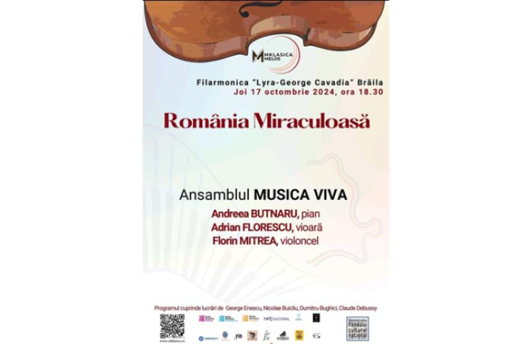 Ansamblul Musica Viva și Filarmonica „Lyra-George Cavadia” Brăila vă dezvăluie lucrări inedite și rar interpretate din muzica românească mai puțin cunoscută a anilor 1900-1970, care au impresionat auditoriul pe scenele internaționale printr-o mai profundă înțelegere a valorilor și identității noastre culturale. Evenimentul are loc joi, 17 octombrie, la ora 18.30, iar intrarea este gratuită, în limita locurilor disponibile.
