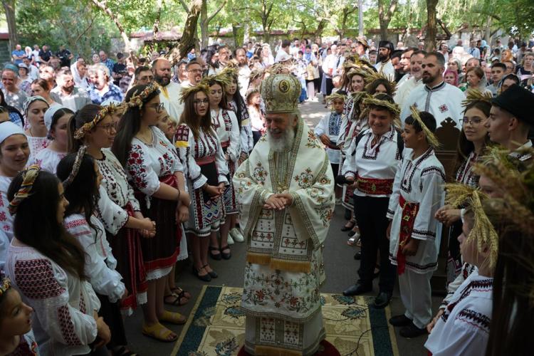 • sute de copii și adolescenți, îmbrăcați în straie naționale, au primit binecuvântarea ierarhului Dunării de Jos la praznicul Nașterii Sf. Ioan Botezătorul • ÎPS Arhiepiscop Casian, împreună cu un sobor de ieromonahi, preoți și diaconi, a săvârșit Sfânta Liturghie la altarul de vară din curtea mănăstirii • ierarhul a oficiat și un Parastas pentru ctitorii sfântului așezământ monahal • credincioșii au participat, apoi, la agapa creștinească pregătită pentru marea sărbătoare • Iustin Țopea, student la Facultatea de Teologie din București, a fost primit ca frate în obștea mănăstirii