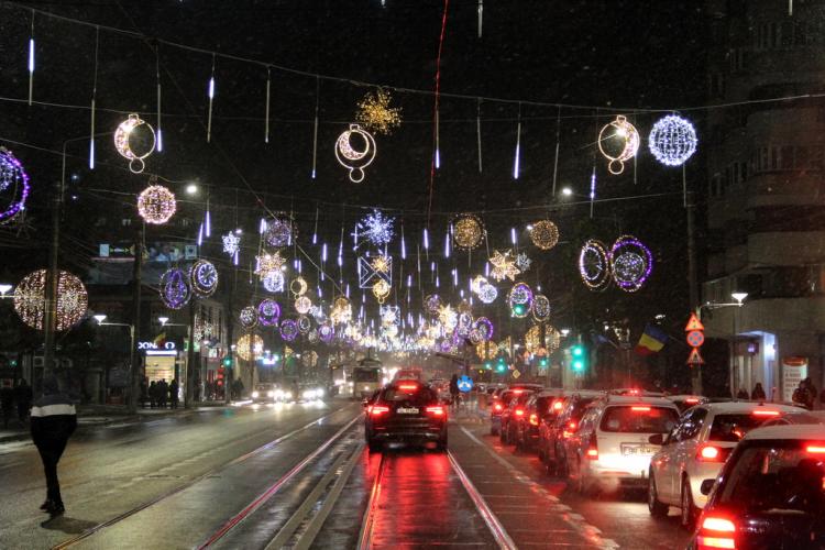 * primarul Marian Dragomir a anunțat că încă nu s-a finalizat montarea instalațiilor în tot orașul, fiind încă în lucru bulevardul Dorobanților și strada pietonală Mihai Eminescu
