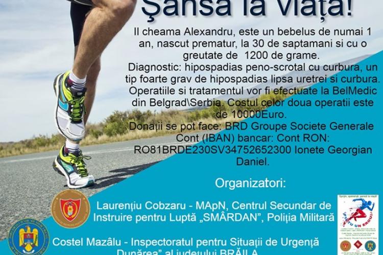 * sâmbătă, în Parcul Monument, Laurenţiu Cobzaru şi Costel Mazâlu vă invită să alergaţi pentru Alexandru-Valentin Ionete, un băieţel născut cu o malformaţie genitală gravă