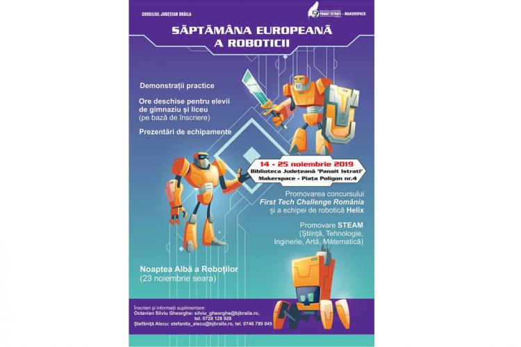 “Vă pasionează tehnologia? Haideţi la bibliotecă să vedeţi cum se construiesc roboţii”! Biblioteca Judeţeană „Panait Istrati” Brăila invită elevii de gimnaziu şi liceu, în perioada 14-25 noiembrie 2019, la o serie de ore deschise desfăşurate la Makerspace, în cadrul Săptămânii Europene a Roboticii.