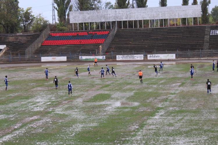 • partida s-a disputat chiar după ce RO-ALERT a anunțat cod portocaliu de ploi torențiale și furtună • toți acuză starea precară a terenului de la Municipal • însă vina supliciului la care au fost supuși jucătorii aparține brigăzii de arbitri și observatorilor