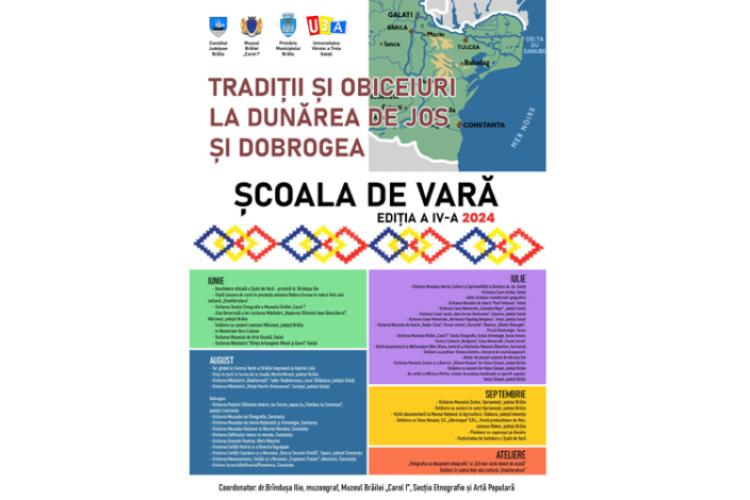 Muzeul Brăilei „Carol I” – Secția Etnografie și Artă Populară organizează, în perioada iunie – septembrie 2024, cea de a IV-a ediție a Școlii de Vară „Tradiții și obiceiuri la Dunărea de Jos și Dobrogea”, în colaborare cu Universitatea Vârstei a Treia Galați. Coordonator al activității este dr. Brîndușa Ilie, muzeograf în cadrul Secției Etnografie și Artă Populară a Muzeului Brăilei „Carol I”.