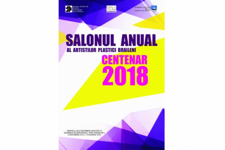 Pe data de 6 decembrie 2018, ora 17.00, la Galeria de Artă Brăila din Piaţa Traian, nr. 2, are loc vernisajul expoziţiei “SALONUL ANUAL AL ARTIŞTILOR PLASTICI BRĂILENI – CENTENAR 2018”. Evenimentul este organizat de Filiala Brăila a Uniunii Artiştilor Plastici din România, Consiliul Judeţean Brăila şi Centrul de Creaţie Brăila şi reuneşte lucrări reprezentative de pictură, grafică şi sculptură realizate în acest an de 28 dintre membrii filialei brăilene.