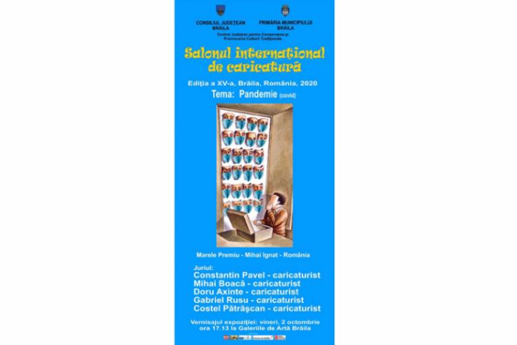 Vineri, pe 2 octombrie 2020, începând cu ora 17.13, la Galeriile de Artă din Piaţa Traian nr. 2 va avea loc vernisajul celei de-a cincisprezecea ediţii a Salonului Internaţional de Caricatură. Evenimentul este organizat de Consiliul Judeţean Brăila, cu sprijinul Primăriei Municipiului Brăila şi Centrul Judeţean pentru Conservarea şi Promovarea Culturii Tradiţionale.