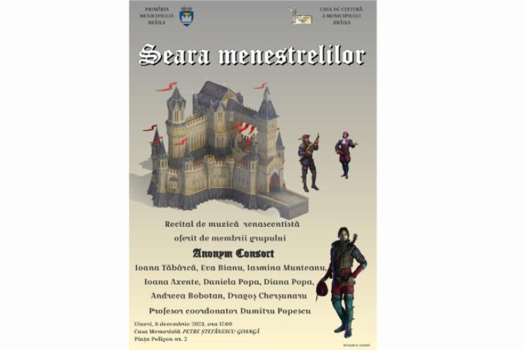 Casa de Cultură a Municipiului Brăila îi invită pe brăilenii de toate vârstele, melomani și nu numai, în ziua de vineri, 8 decembrie, de la ora 17.00, la „Seara Menestrelilor” .