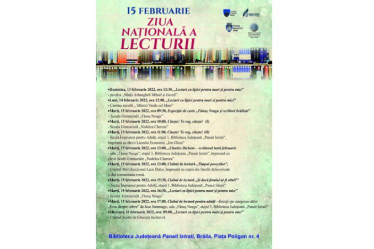 România celebrează pentru prima dată Ziua națională a Lecturii astăzi, 15 februarie. Cu acest prilej, Biblioteca Județeană “Panait Istrati” Brăila organizează o serie de sesiuni de lectură și expoziții de carte.
