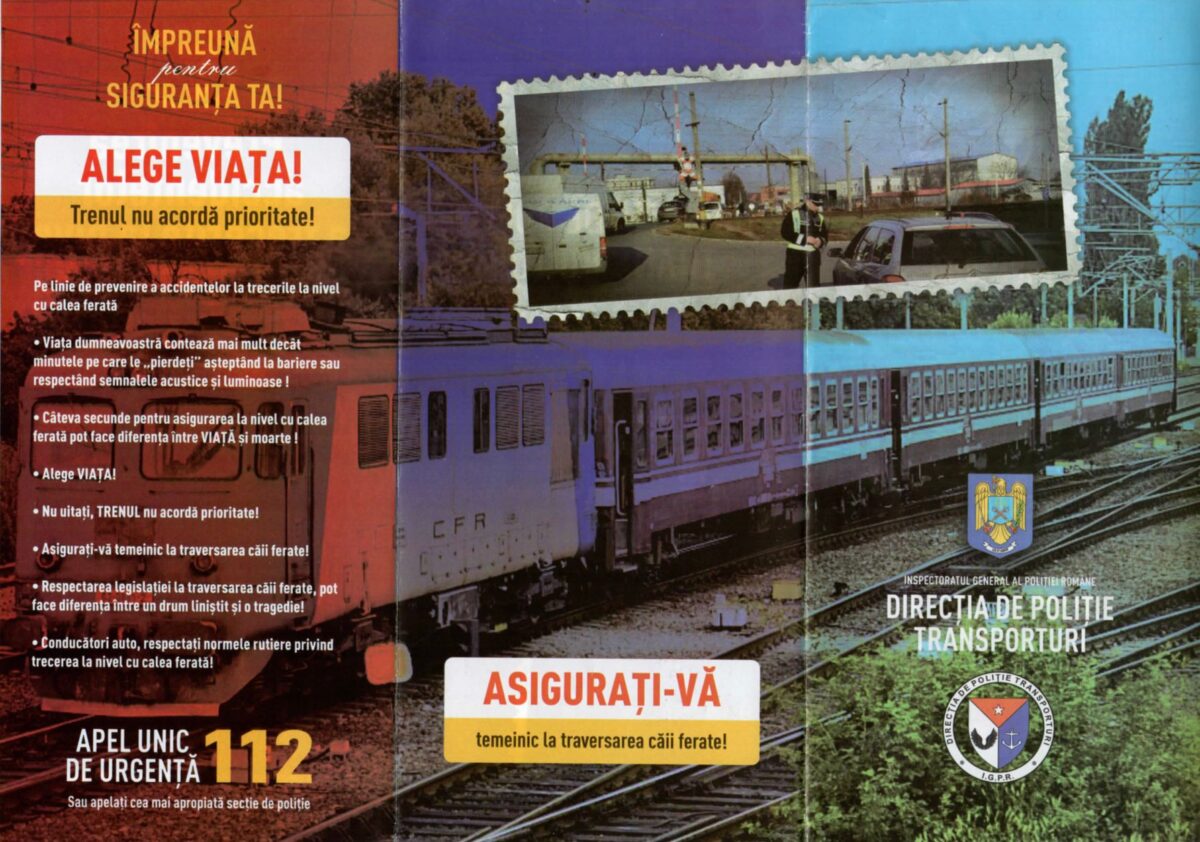 Totodată, având în vedere și caracterul preventiv al acțiunii, polițiștii au distribuit conducătorilor auto materiale informative sub formă de pliante ”ALEGE VIAȚA! Trenul nu acordă prioritate!”, ce conțin sfaturi utile pentru prevenirea accidentelor la trecerile la nivel cu calea ferată. ”Viața dumneavoastră contează mai mult decât minutele pe care le «pierdeți» la barieră sau respectând semnalele acustice și luminoase!