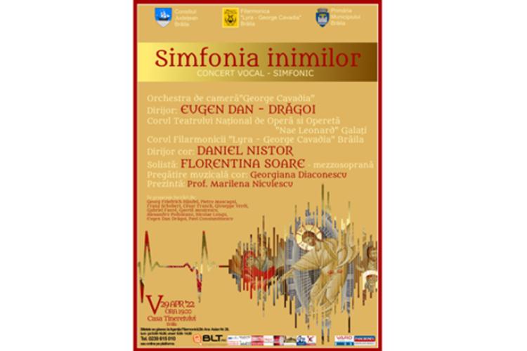 „Smerenia, speranța, bucuria se regăsesc în inimile noastre, poate, mai mult ca oricând, în Săptămâna Luminată, când înțelegem valoarea sacrificiului și ne arătăm recunoștința printr-un concert-rugăciune. Filarmonica „Lyra – George Cavadia” Brăila, împreună cu partenerii săi, Consiliul Județean și Primăria Municipiului Brăila, vă invită vineri, 29 aprilie, de la ora 19.00, la Casa Tineretului, la Concertul vocal-simfonic „Simfonia inimilor”, oferit de Orchestra „George Cavadia”, la pupitrul căreia se va afla maestrul Eugen Dan Drăgoi, Corul Teatrului Național de Operă și Operetă „Nae Leonard” Galați și Corul Filarmonicii „Lyra-George Cavadia” Brăila, reunite sub îndrumarea dirijorului Daniel Nistor”, se precizează în comunicatul organizatorilor.