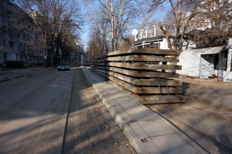 Șinele, cablurile electrice și dalele de pe Independenței, la casat