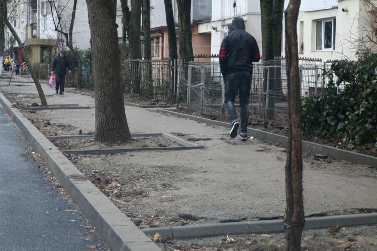 Spaţii verzi mai mult decât generoase pe trotuare recent reabilitate din zona Viziru