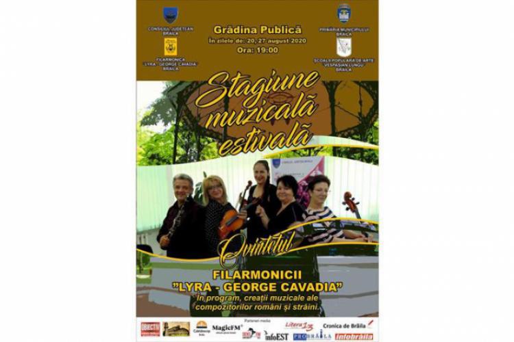 Astăzi, 27 august, de la ora 19:00, în Chioşcul din Parcul Grădina Publică Brăila, Cvintetul Filarmonicii „Lyra – George Cavadia”, ce se află sub autoritatea Consiliului Judeţean Brăila, îşi încheie recitalul cameral din cadrul Stagiunii Muzicale Estivale cu un program de excepţie.