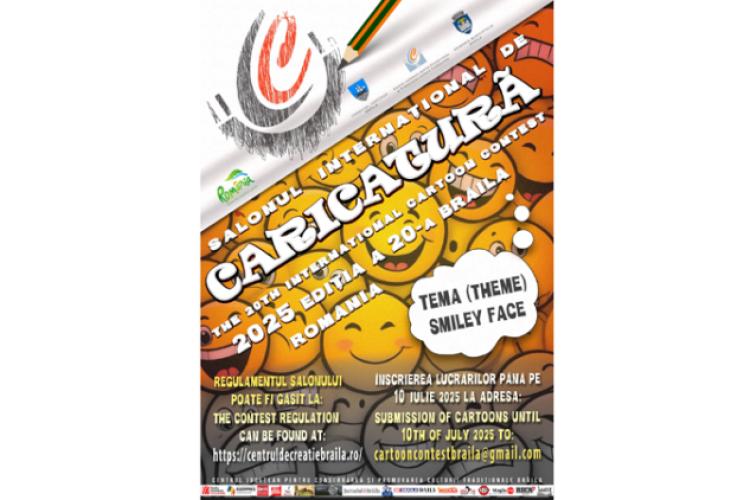 Salonul Internațional de Caricatură reprezintă unul dintre cele mai importante evenimente din domeniul caricaturii și marchează continuitatea în contemporaneitate a conceptului de schiță/desen satiric aflat între tradiție și inovație, plecând de la tema dată și trecând prin diferite formule de percepție și de prezentare personală, cu o atenție deosebită acordată coloristicii, formelor și simbolurilor. Concursul se adresează caricaturiştilor amatori sau profesionişti, iar tema ediției XX este „Față zâmbitoare” (Smiley Face). Lucrările (maxim 3), în format digital, vor fi trimise până la data de 10 iulie 2025, la adresa de email cartooncontestbraila@gmail.com și vor fi însoțite de o scurtă prezentare a activităţii artistice a autorului.