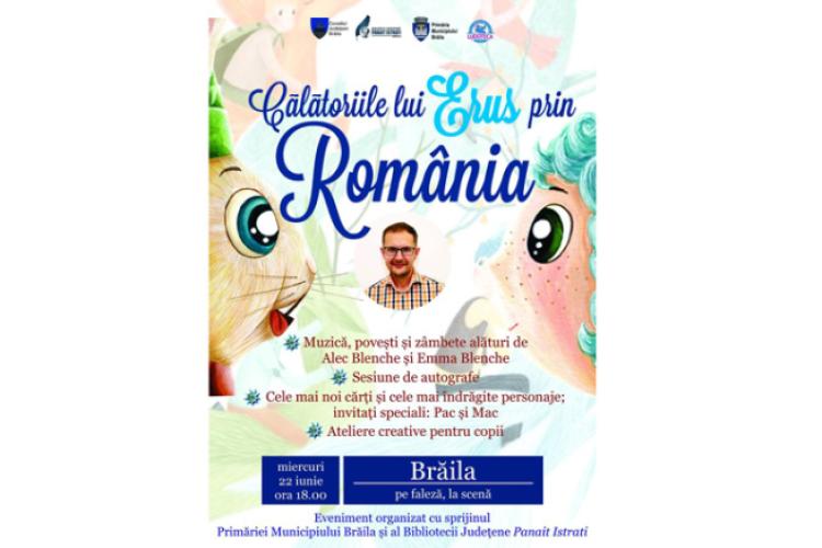 ”La evenimentul ”Călătoriile lui Erus prin România” ne vom bucura împreună de îndrăgitele personaje Pac și Mac, de muzică, autografe, ateliere creative și multe alte surprize! Chiar dacă acum faceți cunoștință cu ei, vă garantăm o seară minunată, o sărbătoare pentru copii, dar și pentru părinți”, transmite Biblioteca Județeană ”Panait Istrati”.