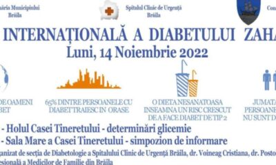 * luni, de Ziua Internațională a Diabetului zaharat, brăilenii se pot testa, gratuit, pentru aflarea glicemiei * evenimentul este organizat de Secția de Diabetologie a Spitalului...
