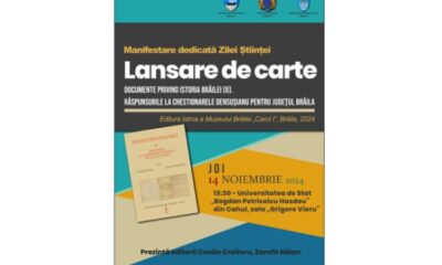 • este vorba de „Documente privind istoria Brăilei. Răspunsurile la Chestionarele Densușianu, pentru județul Brăila” și „Unelte și arme de piatră, corn și os din colecția...