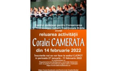 * înființată în anul 1997, Corala „Camerata” își va relua activitatea în cadrul Centrului Județean pentru Conservarea și Promovarea Culturii Tradiționale Brăila Corala Feminină...