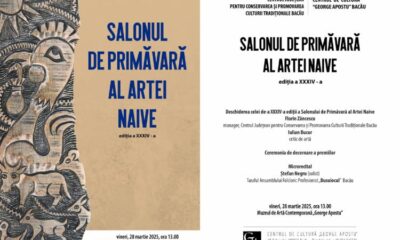 • vineri, 28 martie, de la ora 13:00, la Muzeul de Artă Contemporană „George Apostu”, din Bacău, are loc vernisajul expoziției „Salonului de Primăvară al Artei...