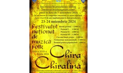 • wekeendul trecut, la Teatrul „Maria Filotti”, s-a desfășurat cea de-a XVIII-a ediție a Festivalului Național de Muzică Folk „Chira Chiralina” – un regal de muzică...