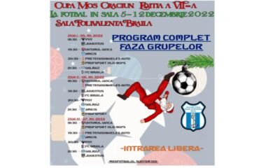 * la competiție participă opt echipe Asociația Clubul Sportiv de Minifotbal Brăila organizează în perioada 5-12 decembrie 2022, la Sala Polivalentă, ediția...