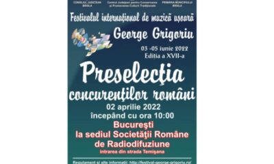 * pe 1 aprilie, la sediul Societății Române de Radiodifuziune, a avut loc preselecția concurenților aspiranți la cea de-a XVIII-a ediție a Festivalului Internațional de Muzică...