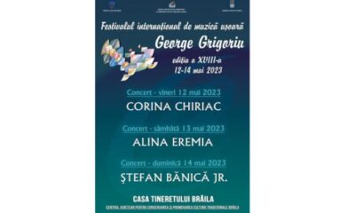 * Teatrul „Maria Filotii” Brăila va găzdui Festivalul „George Grigoriu”, la care participă concurenți din România, Italia, Polonia, Ungaria, Bulgaria, Kazahstan, Bosnia Herțegovina și Armenia *...