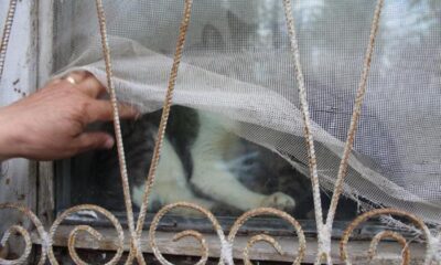 * de opt ani, la parterul blocului F5, de pe Aleea Cocorilor, familia Sarcoșel – mamă și fiică – crește în apartament peste 50 de pisici...