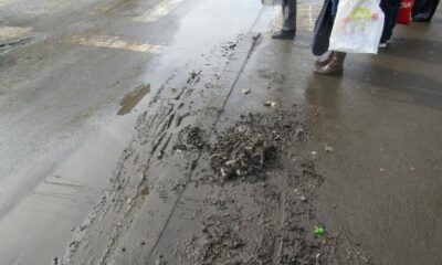 * mizeria rămasă în urma topirii munților de zăpadă fie este împinsă în gurile de canalizare, de salubriștii dotați cu mături, fie rămâne pe trotuare și...