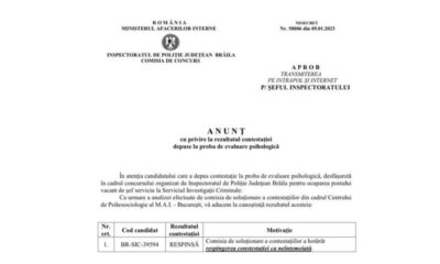 • după cum se arată pe site-ul Inspectoratului de Poliție Județean Brăila, ca urmare a analizei efectuate de comisia de soluționare a contestațiilor din cadrul Centrului...