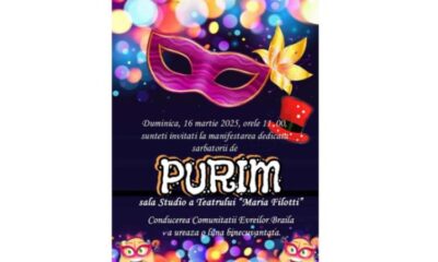 • evenimentul va avea loc duminică, 16 martie, ora 11:00, în Sala Studio a Teatrului „Maria Filotti” Brăila • coordonator: Nadia Ustinescu, președintele Comunității Evreilor Brăila...