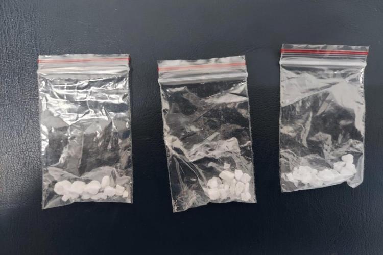 * jandarmii au găsit într-unul din buzunarele hainei trei pliculețe în care se afla o substanță albă tip cristal, susceptibilă a avea efecte psihoactive * depistarea tânărului s-a făcut joi, iar tânărul a declarat că nu sunt ale sale, ci ale unui prieten care i le-ar fi dat să i le țină cât el este plecat