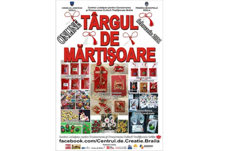 Consiliul Județean Brăila, cu sprijinul Primăriei Municipiului Brăila și Centrul Județean pentru Conservarea și Promovarea Culturii Tradiționale Brăila, organizează în această perioadă, până pe 8 martie, Târgul de Mărțișoare on line.