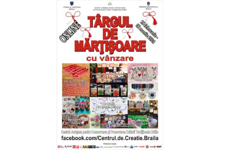 Centrul Județean pentru Conservarea și Promovarea Culturii Tradiționale Brăila (Centrul de Creație), în parteneriat Primăria Municipiului Brăila și Consiliul Județean Brăila organizează, până de Ziua Internațională a Femeii (8 martie 2024) Târgul de Mărțișoare online cu produse realizate exclusiv în atelierele CJCPCT Brăila și ale artizanilor locali.