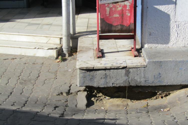 • apariția acestei tasări este surprinzătoare, mai ales în contextul în care fundația clădirii a fost executată, cu mult simț de răspundere, în anii ’70 • cauza ar putea să țină de la un vechi canal colector care trece pe sub bulevardul Cuza
