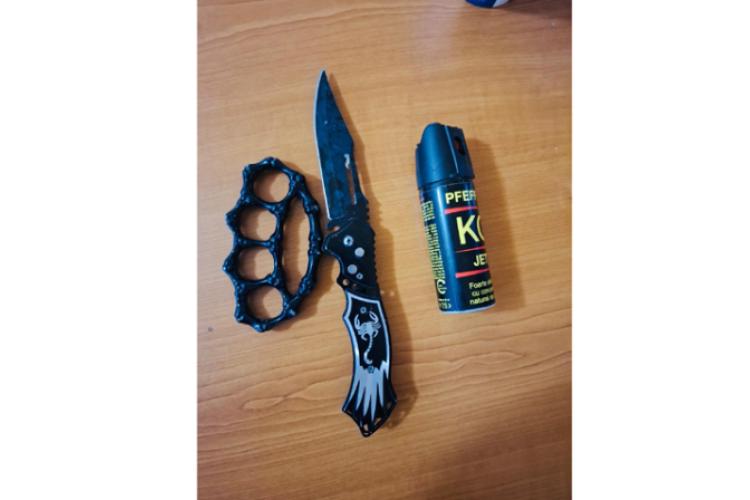 • la sfârșitul săptămânii trecute, jandarmii au găsit asupra a trei tineri un briceag de 24 cm, un obiect metalic tip “box” și un spray iritant lacrimogen