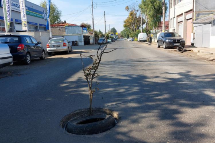 * o semnalizare “rutieră” marca “românească” a apărut pe o arteră din municipiu * conform unei sesizări, recent reabilitata Mircea Mălăeru a intrat în posesia unui copăcel și a unei anvelope uzate, asociere menită să avertizeze participanții la trafic despre eventualul pericol