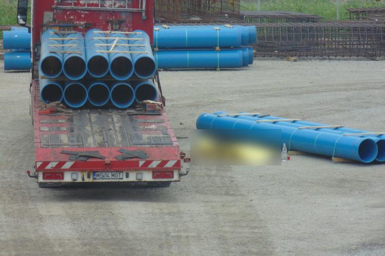 * victima era angajată a unei societăți din Mureș, subcontractor al firmei italiene Astaldi * când a început descărcarea țevilor, bărbatul nu și-ar fi ales locul potrivit pentru a staționa, astfel că un pachet de trei țevi din PVC s-a răsturnat peste el * atât Poliția, cât și Inspectoratul Teritorial de Muncă au deschis anchetă pentru a afla cum s-a produs cu exactitate accidentul de muncă mortal