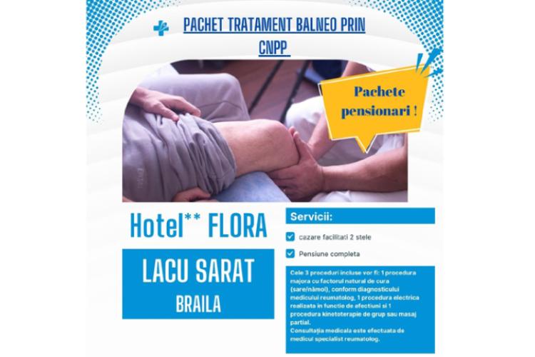 Pentru perioada iunie – septembrie, Casa Națională de Pensii Publice (CNPP) a alocat peste 600 de bilete de tratament destinate pensionarilor și persoanelor vârstnice, iar datorită cererii foarte mari, a fost organizată o nouă sesiune pentru perioada 16 octombrie – 2 decembrie 2024, când s-a suplimentat numărul de bilete de tratament cu încă 200, la Hotel Flora din Lacu Sărat Brăila. Această decizie vine ca răspuns la cererea ridicată pentru tratamente balneare. Potrivit directorului Sorin Boșneag, este prima dată, în ultimii 35 de ani, când se ia o astfel de măsură. ”Prin această inițiativă de suplimentare a biletelor, Casa de Pensii a demonstrat încă o dată angajamentul său față de sănătatea pensionarilor, creând un cadru accesibil și eficient pentru tratamente balneare. Oferind predictibilitate și acces la servicii de calitate, CNPP a reușit să contribuie la dezvoltarea stațiunilor balneare din România, iar Hotel Flora din Lacu Sărat este un exemplu de succes în acest parteneriat”, se arată în comunicatul remis de reprezentanții Unita Turism Brăila.