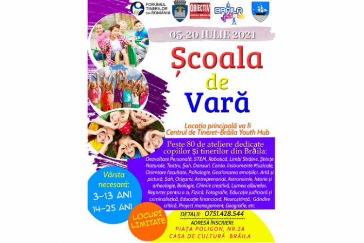 Înscrierile la “Școala de vară” se pot face printr-un mesaj pe pagina de Facebook Centrul de Tineret – Brăila Youth Hub sau la numărul de telefon 0751428544.