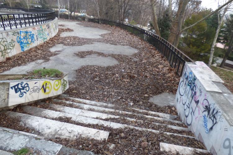 Scara de lângă sediul ANAF, cea care duce spre faleză este un loc unde ziua te poţi răni grav în ţepii unui arbust cu coroana extinsă mult în zona treptelor şi care pe timp de noapte intră într-o beznă totală. Aşa că, ieşind de la vreun spectacol nocturn, cine trece pe aici trebuie să aibă o lanternă ori să folosească lumina telefonului mobil. Mai mult, iarna nu se dă deloc cu lopata, riscul fiind al accidentării pe stratul de gheaţă devenit derdeluş sau în brocurile de sudură de pe balustrada vandalizată şi ea.